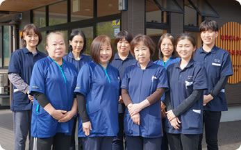 - 午前中に入浴・個別レクリエーション・機能訓練などを行い、午後から全体レクリエーションを行います。もちろん、ご利用者の身体機能に応じて介護支援を行います。服薬管理や排泄確認など、生活に必要なあらゆる支援を行います。