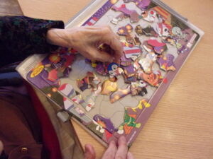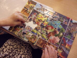 パズルをして手指の運動、脳を活性化させて認知症予防に。