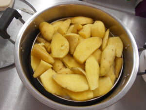 さつまいもはあらかじめ、湯がして柔らかくしておきます。