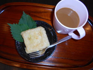 芋羊羹をきんつば風にアレンジしたもので、焼いたさつまいもと粒あんを組み合わせ、小麦粉の衣をつけてフライパンで焼いて作られます。