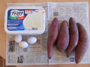 ①さつま芋は皮を剥き、2㎝ぐらいに切ってボールへ