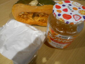材料は、かぼちゃ、マーマレード、ホットケーキミックスです。