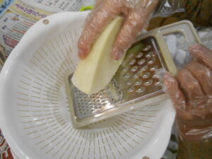 そんな大根を使って、今回は、明太チーズ大根餅作りを行いました。