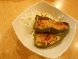 旬のピーマンを使って、厨房職員が「ピーマンの肉詰め」を作りました。