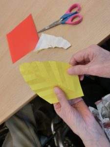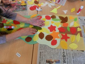 落ち葉は何回も創作していますが、改めて職員が作り方を教えると、